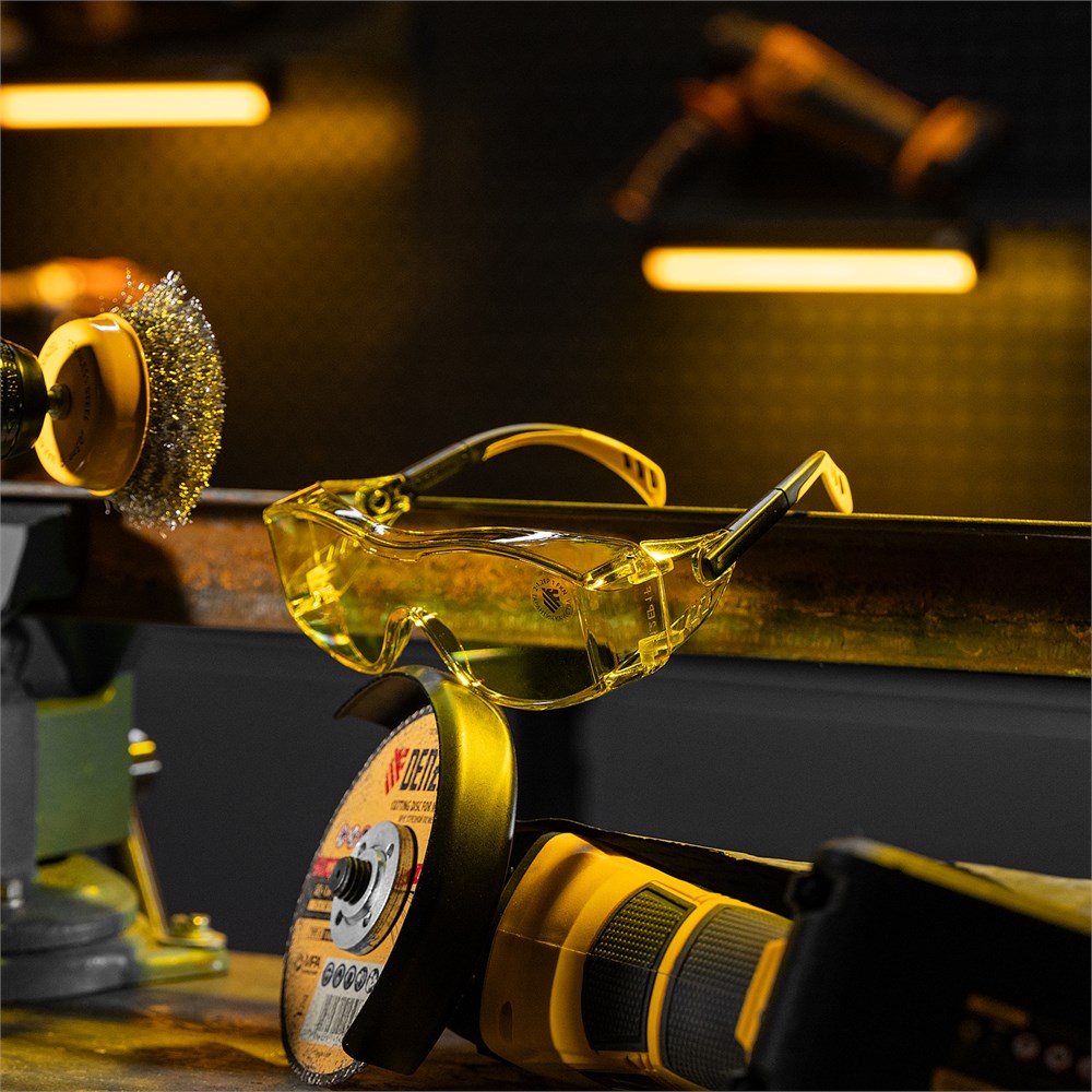 Очки защитные открытые, поликарбонатные, увеличенная желтая линза, регулируемые дужки Denzel