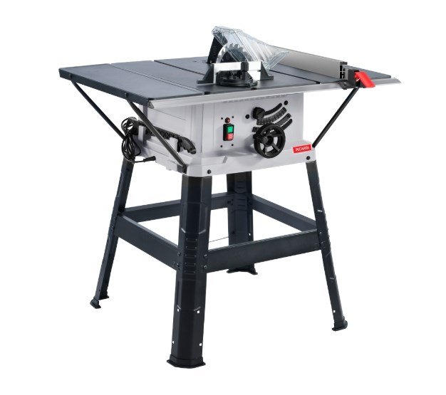 Универсальность использования достигается благодаря возможности наклона пильного диска в диапазоне от 0 до 45°. Большой размер рабочего стола (630 на 935 мм) позволяет комфортно работать с крупным заготовками.