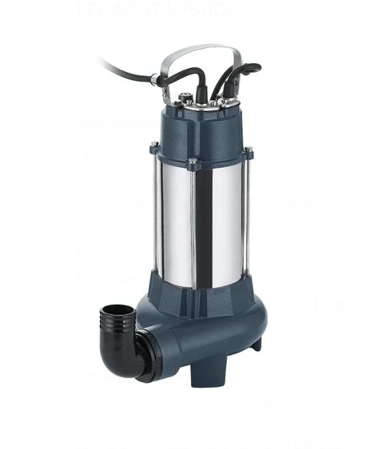 FEKACUT V750DF обладает металлическим рабочим колесом, которое гарантирует долгий срок службы и надежность в использовании. С его максимальным напором 7,5 метров вы можете быть уверены в эффективной перекачке жидкости на необходимое расстояние.