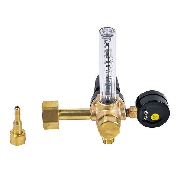 - Компактный латунный корпус с манометром d.40мм и ротаметром (показывает поток газа в л/мин на выходе);