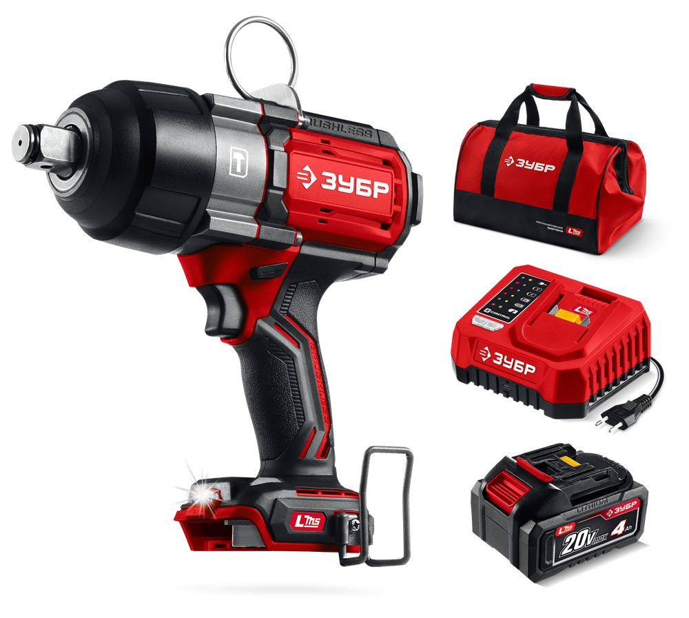 Бесщеточный ударный гайковерт ЗУБР системы LMS с максимальным крутящим моментом 1000 Нм предназначен для фиксации резьбовых соединений размером до М26. Ударная функция с тангенциальным направлением удара обеспечивает эффективное заворачивание без реактивного момента на кисть оператора. Комплектация с аккумулятором большой емкости позволяет работать дольше на одном заряде