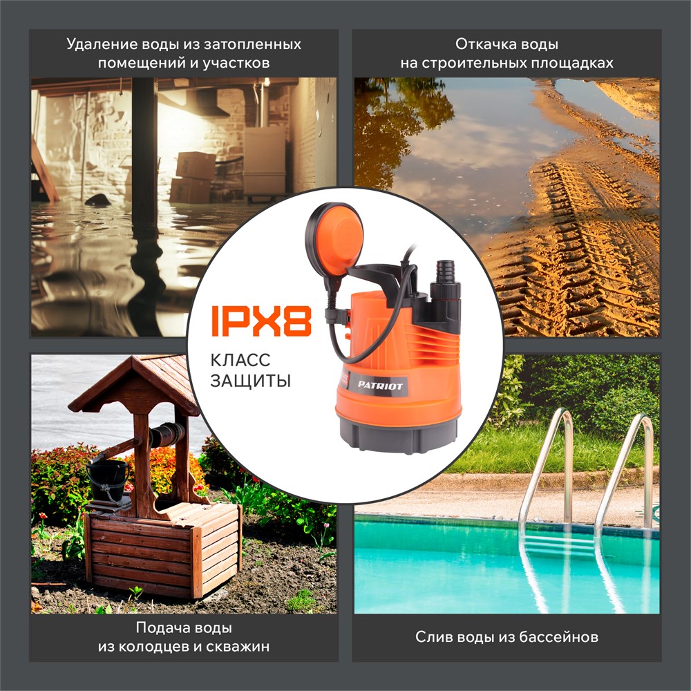 Погружной дренажный насос предназначен для откачивания дренажных, дождевых и грунтовых вод из затопленных подвальных помещений, котлованов и бассейнов, как в быту, так и в промышленности. Диаметр твердых пропускаемых частиц до 5 мм.