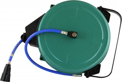изделия является возможность использовать нужную для производства работы длину шланга и компактное его хранение в корпусе. Шланг без особых усилий извлекается из корпуса на нужную длину, фиксируется и автоматически возвращается после ослабления кулачкового фиксатора вылета по окончании работ. Изделие снабжено кронштейном для подвеса или установки на вертикальной поверхности (стене), сохраняя при этом возможность поворачиваться в горизонтальной плоскости на угол 180°. Шланг подключения к магистрали снабжен штуцером с резьбовой частью 1/4" BSP, шланг подключения к потребителю дополнительно снабжен быстросъемным соединением для штуцеров SMC.