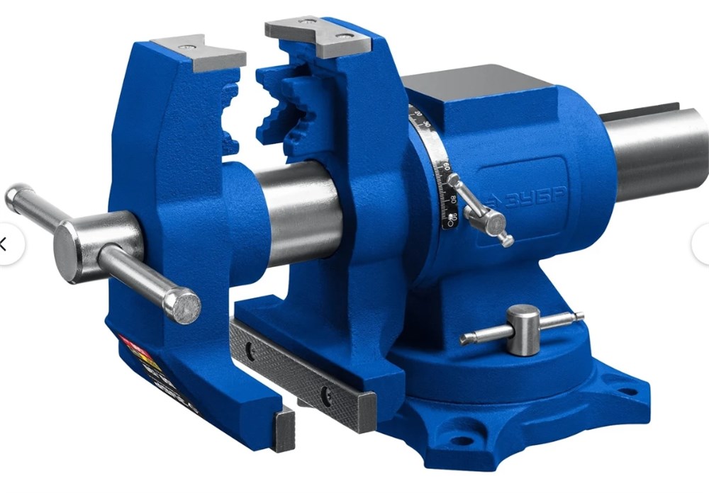 - Поворотное основание позволяет перемещать корпус тисков в горизонтальной плоскости на угол от 0 до 360 градусов