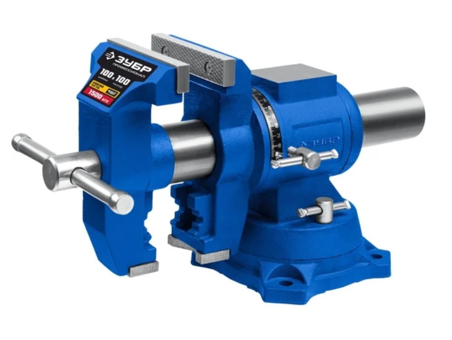 Слесарные тиски ЗУБР Профессионал Эксперт многофункциональные с поворотом в двух плоскостях, 100 мм 32712-100