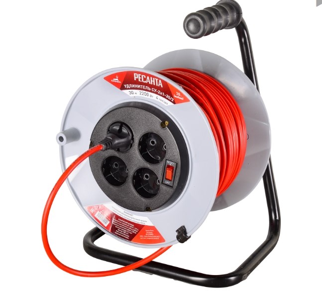 Удлинитель силовой на катушке Ресанта СУ-2х1-30/2 (с выкл., 4 розетки)