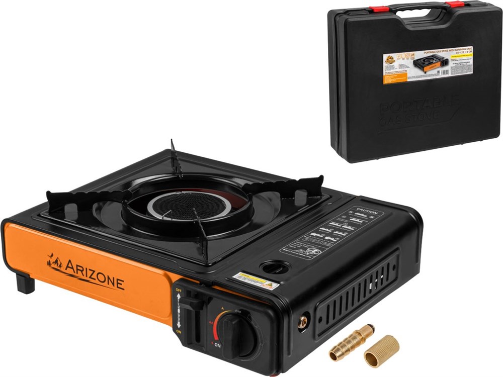 Плитка газовая портативная в кейсе, 34x25x8 см, ARIZONE (адаптер на большие баллоны, инфракрасная конфорка)