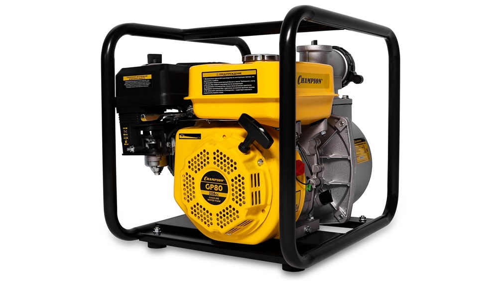 Мотопомпа CHAMPION GP80 предназначена для перекачки воды. Оснащена четырехтактным двигателем мощностью в 7 лошадиных сил, который позволяет перекачивать 1000 литров воды в минуту.