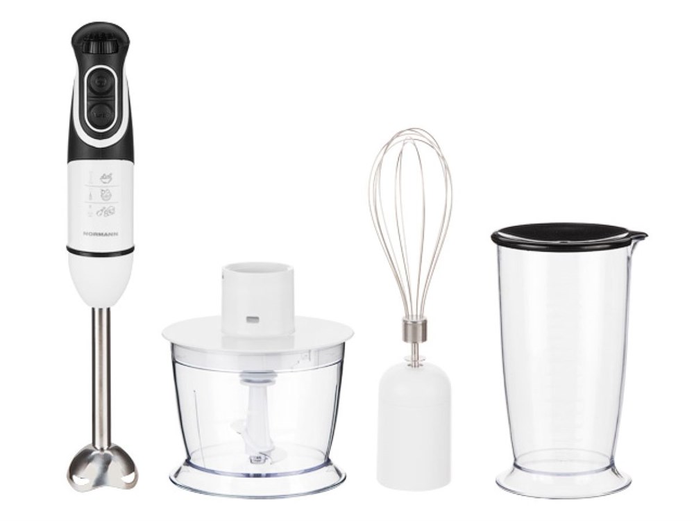 Блендер погружной AHB-542 NORMANN (900 Вт; регул.скор.; венчик; измельчитель; стакан)