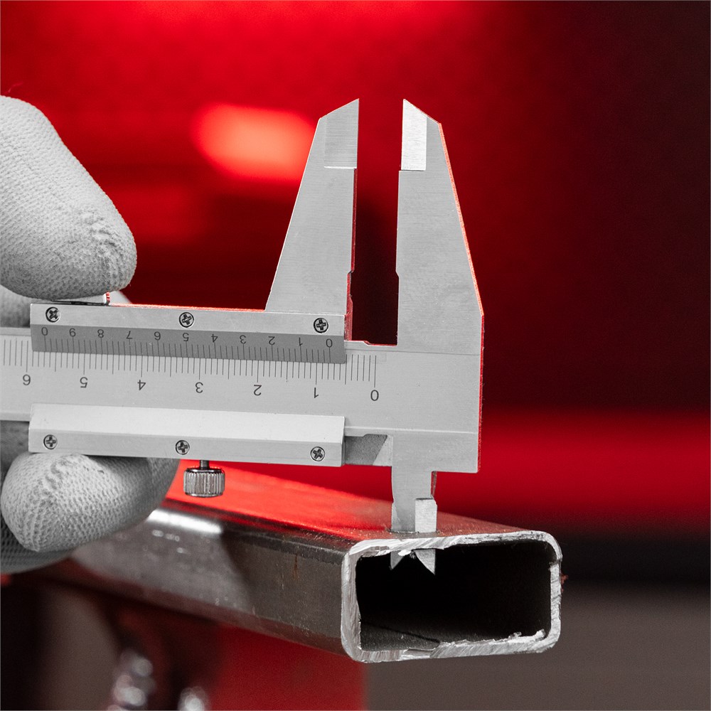 - Надежность — штангенциркуль изготовлен из углеродистой стали, устойчивой к механическим воздействиям. Точное позиционирование губок — зажимной винт позволяет зафиксировать подвижную рамку, чтобы она не сместилась во время измерения. Удобное хранение и транспортировка — штангенциркуль упакован в прочный пластиковый кейс.