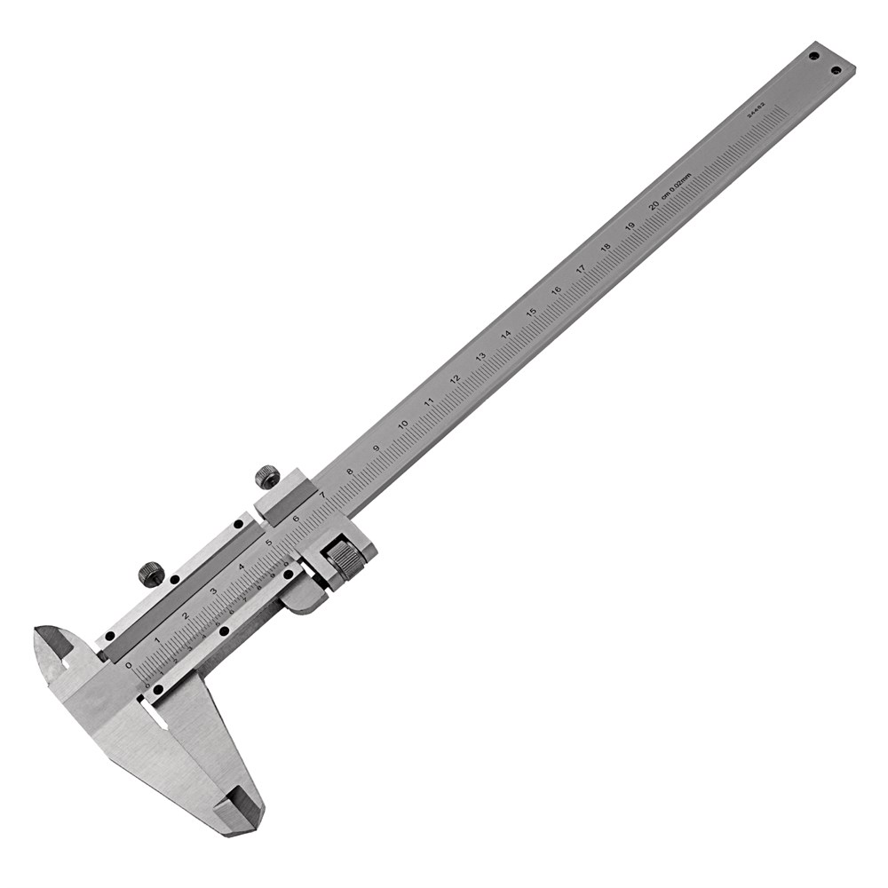 - Надежность — штангенциркуль изготовлен из углеродистой стали, устойчивой к механическим воздействиям. Точное позиционирование губок — зажимной винт позволяет зафиксировать подвижную рамку, чтобы она не сместилась во время измерения. Удобное хранение и транспортировка — штангенциркуль упакован в прочный пластиковый кейс.