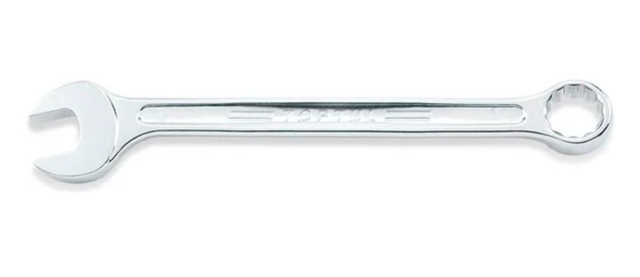 Ключ комбинированный TOPTUL имеет окончание в виде рожкового ключа размером 23мм с одной стороны и окончание в виде накидного ключа размером 23мм с другой стороны. Рожковый ключ имеет смещение 15 по отношению к рукоятке, а накидной - 75. Рекомендуется для профессионального использования.