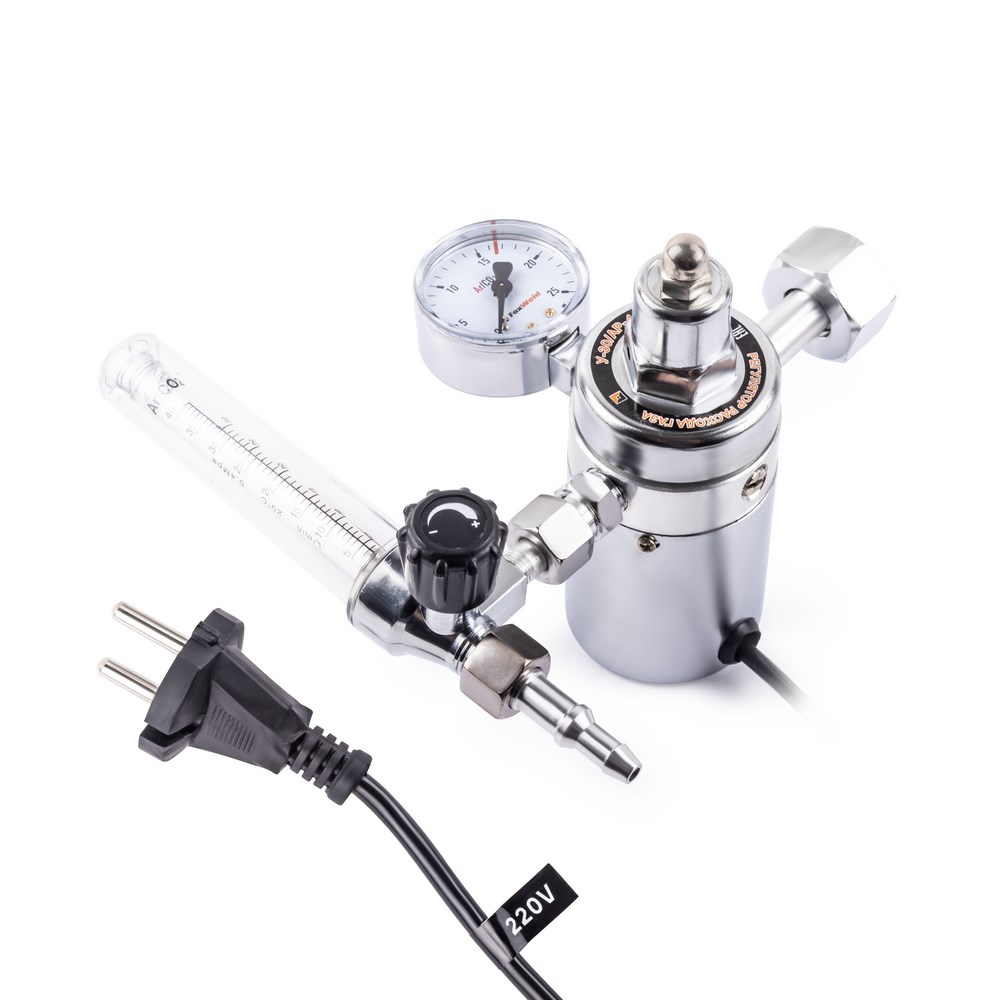 Встроенный манометр давления на входе показывает давление поступающего из баллона газа. С помощью манометра удобно отслеживать уровень давления и задать необходимый объём для работы. Регулировка давления подачи газа осуществляется с помощью наружного вентиля.