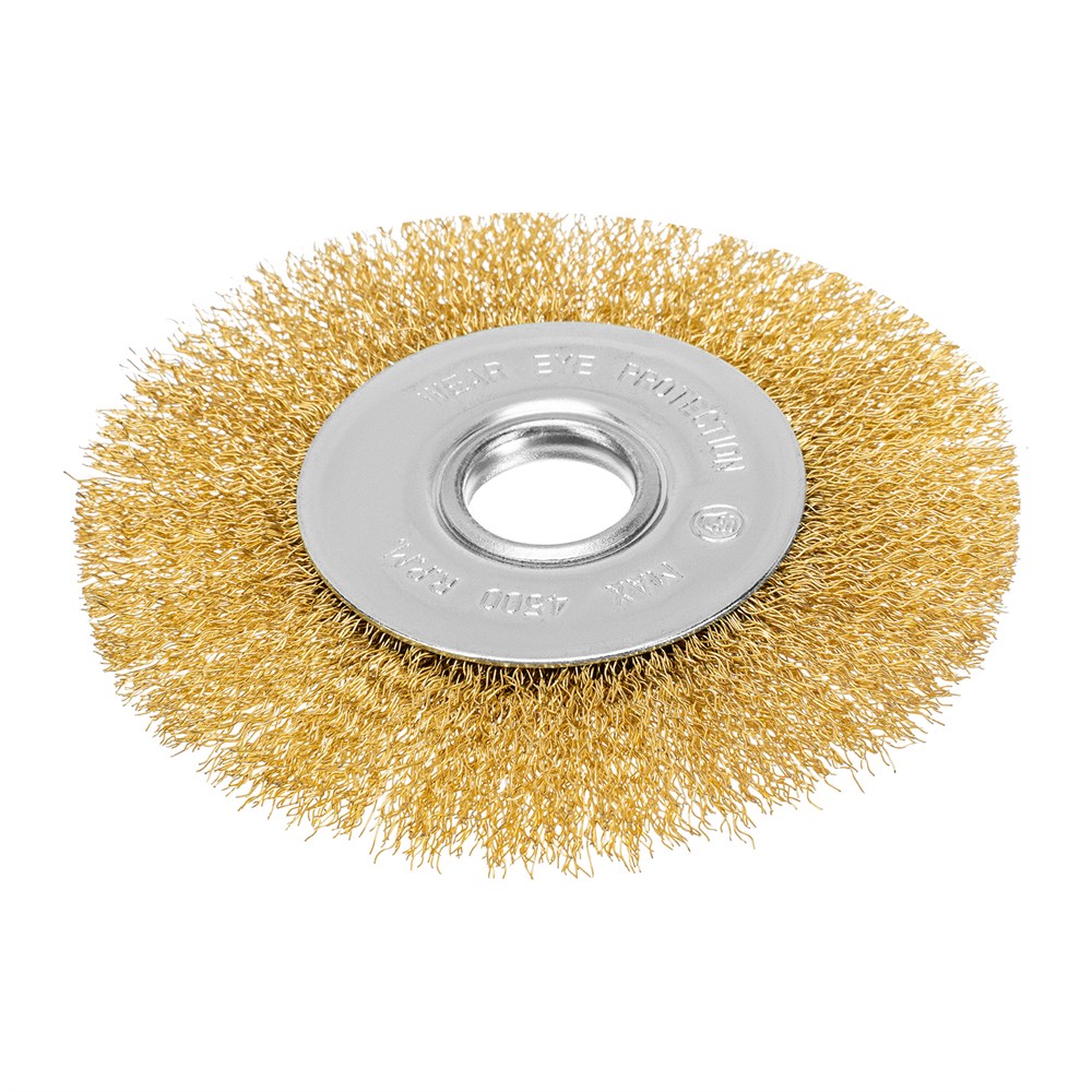 - Высокий ресурс — латунированная щетина из стальной проволоки выдерживает длительную эксплуатацию, в том числе в условиях повышенной влажности. Универсальность — оснасткой можно обрабатывать твердые материалы любого типа: металл, древесину, цветные металлы, пластик и т. д. Антикоррозионные свойства — цинковое покрытие защищает корпус от разрушения.