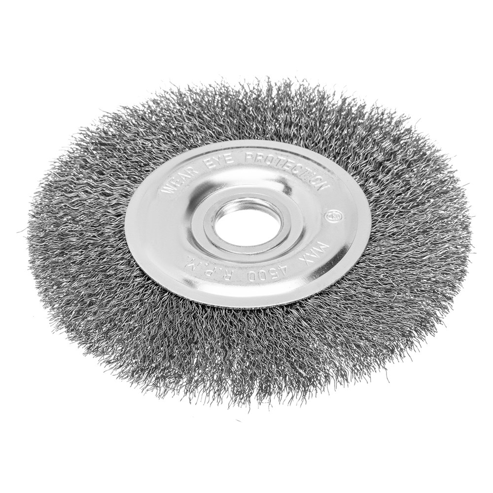 Плоская щетка для УШМ Сибртех 746647 диаметром 150 мм, с посадкой 22,2 мм, с щетиной из витой проволоки диаметром 0,3 мм, предназначена для щадящей очистки твердых поверхностей от загрязнений, ржавчины, остатков краски и других покрытий. Щетина из проволоки толщиной 0,3 мм постепенно снимает тонкий слой материала. Плоская форма щетки делает ее оптимальным инструментом для обработки внутренних углов, пазов, изгибов и малодоступных мест. Щетка позволяет придать шероховатость или подчеркнуть структуру материала. Насадка устанавливается на фланец углошлифовальной машины и подходит для продолжительной работы, не требующей частой смены оснасток. Рекомендуемая максимальная скорость вращения составляет 4500 об/мин. Для обеспечения безопасности оператора следует использовать средства индивидуальной защиты. Щетка применяется в строительной, производственной сфере, а также в быту.