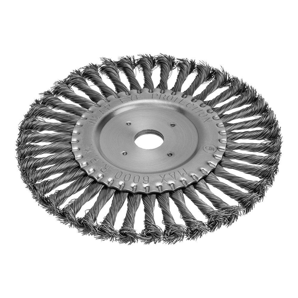Плоская щетка Сибртех 746387 диаметром 200 мм и посадкой 22,2 мм, с щетиной из крученой проволоки толщиной 0,5 мм, устанавливается на вал УШМ, поддерживающей скорость вращения не более 6000 об/мин. Эффективно удаляет загрязнения, толстый слой ржавчины и лакокрасочных материалов с поверхностей, поэтому используется для проведения грубой (черновой) обработки. Плоской щеткой удобно очищать труднодоступные места, в том числе углы и изгибы.