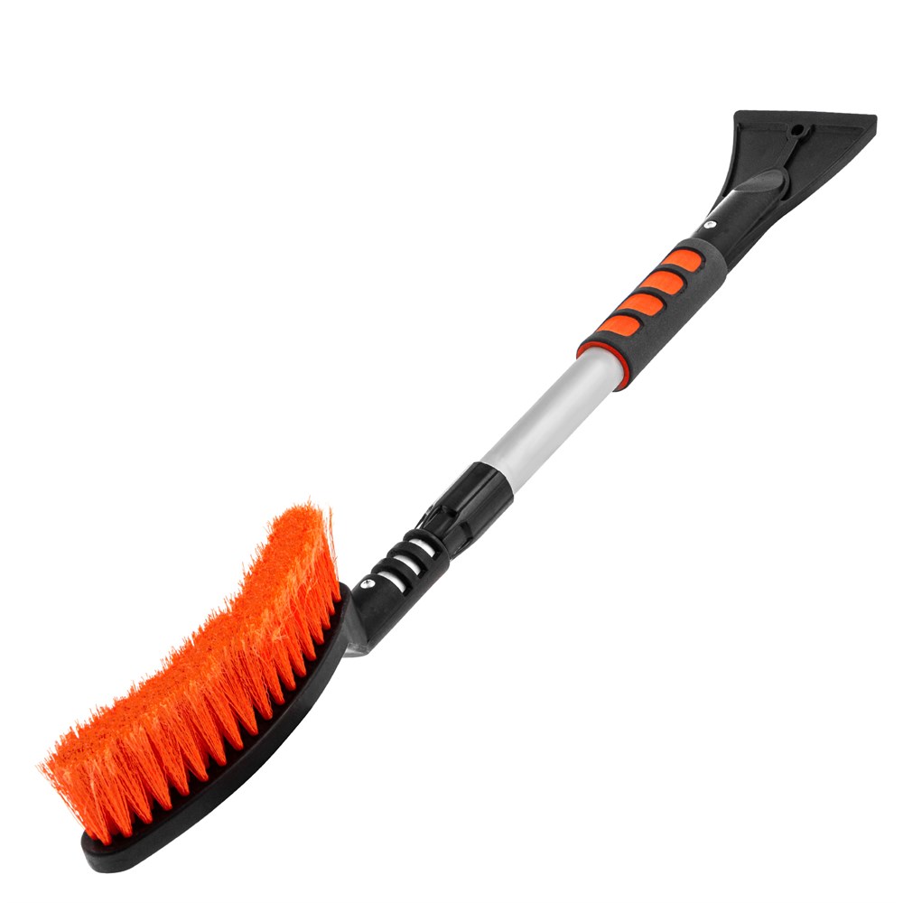 - Долговечность — усиленная рукоятка изготовлена из алюминиевого сплава. Высокая эффективность — скребок с зубьями для дробления льда успешно справляется даже с толстым слоем наледи. Аккуратное очищение — плотная щетина, распушенная на концах, эффективно убирает слой снега, не царапая поверхность кузова. Комфортное использование — мягкая накладка на рукоятке позволяет держать щетку без перчаток.
