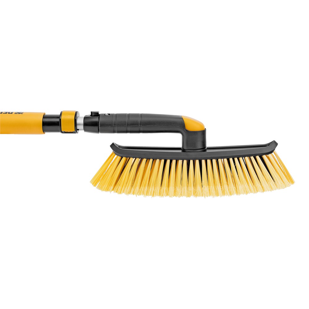 - Высокая прочность — усиленный телескопический корпус из легкого алюминиевого сплава выдерживает интенсивную эксплуатацию при температуре до -40 ℃. Регулировка длины — рукоятка выдвигается и фиксируется на длине 750-1120 мм, за счет чего можно без труда очистить крышу транспортного средства. Эффективность — скребок шириной 115 мм имеет специальные зубья, поэтому успешно справляется с толстым слоем наледи. Бережная очистка — особо мягкая распушенная щетина шириной 320 мм не портит лакокрасочное покрытие автомобиля. Поворотный механизм — щетка фиксируется с шагом 45° в одном из 3 положений. Удобная эксплуатация — на рукоятке имеется мягкая накладка, благодаря которой работать комфортно даже в сильные морозы.