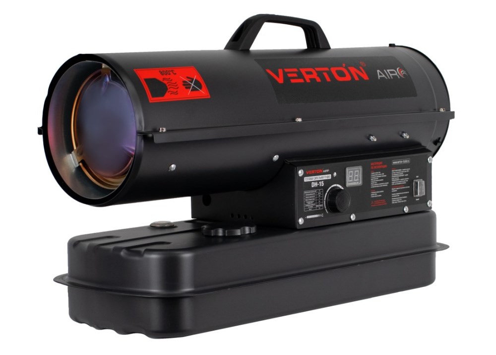Дизельная тепловая пушка Verton Air DH-15 NEW (15кВт,540м3/ч.,1,1л/ч,прям. нагрев,дисплей,манометр,дизель/керосин)