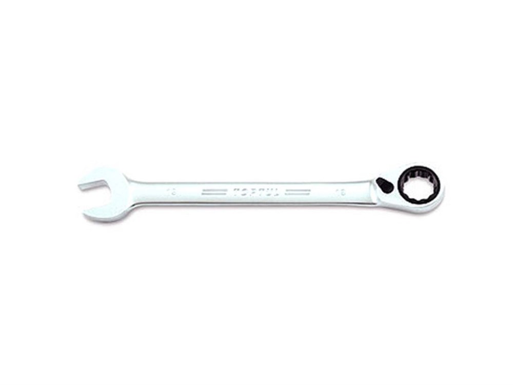 Ключ комбинированный с переключаемой трещоткой TOPTUL с одной стороны - окончание в виде рожкового ключа размером 19 мм с другой стороны - окончание в виде накидного ключа-трещотки размером 19 мм Механизм: способен работать как на зажим, так и на отворорот (имеет переключатель) Рекомендуется для профессионального использования.