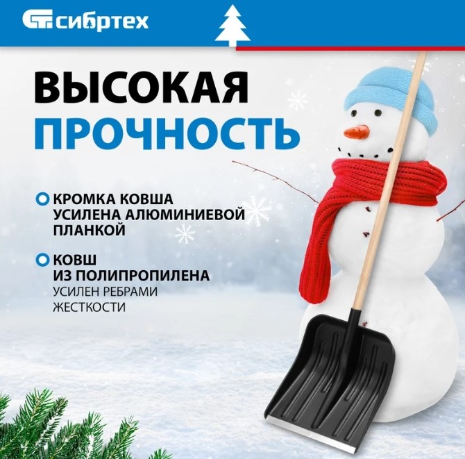 - Корпус снеговой лопаты 360х400 мм СИБРТЕХ 61566 выполнен из морозостойкого пластика;