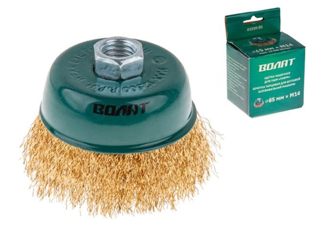 Щетка д/шлиф.маш."чашка" гофр. 65мм ВОЛАТ (для УШМ шлифмашины болгарки М14 торцевая крацовка)
