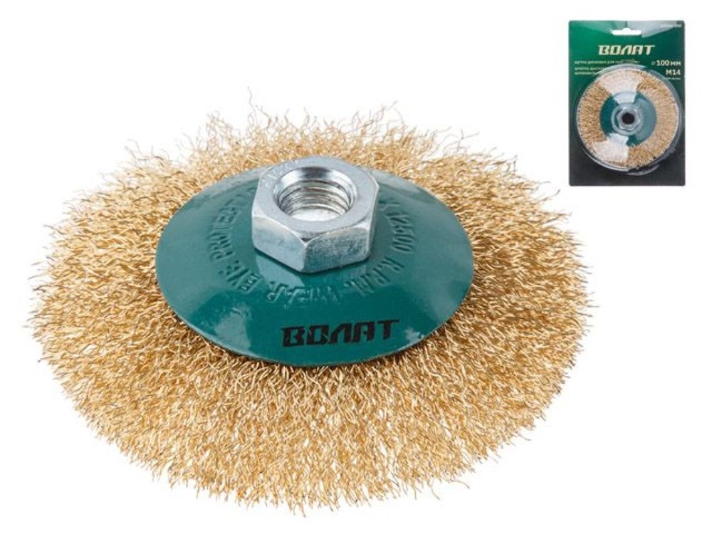 Щетка дисковая гофр.100мм/M14 ВОЛАТ (для УШМ шлифмашины болгарки М14 тарелка торцевая крацовка)