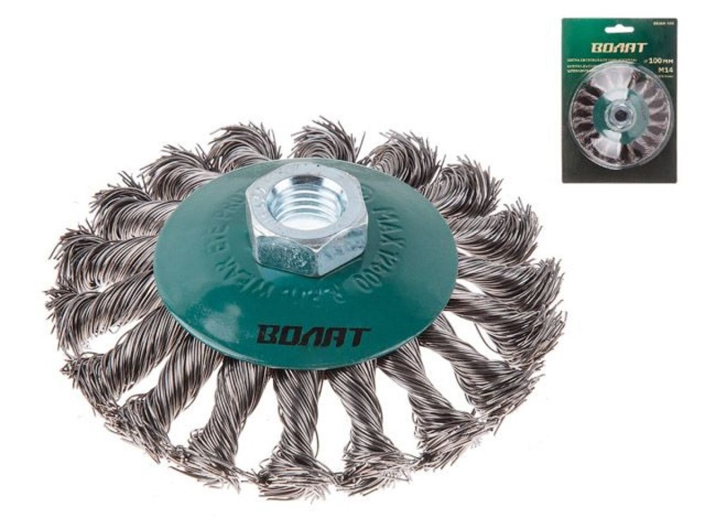 Щетка дисковая косич.100мм/M14 ВОЛАТ (для УШМ шлифмашины болгарки М14 тарелка торцевая крацовка)