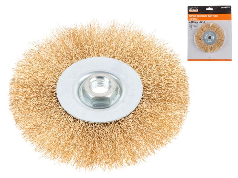 Щетка дисковая гофр.125мм/M14 GEPARD (GP0892-100) (плоская, для УШМ, в блистере)