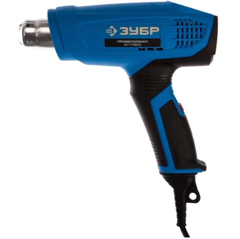 - Малый вес технического фена Зубр Профессионал ФТ-П1800 снижает энергоемкость рабочего процесса;