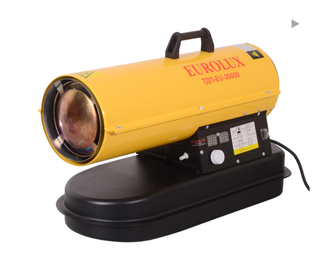 Дизельная теплопушка Eurolux ТДП-EU-30000 – экономичный и простой способ обогрева. Она не требует длительного монтажа, максимально проста в эксплуатации. Для запуска достаточно залить в бак топливо и запустить устройство.