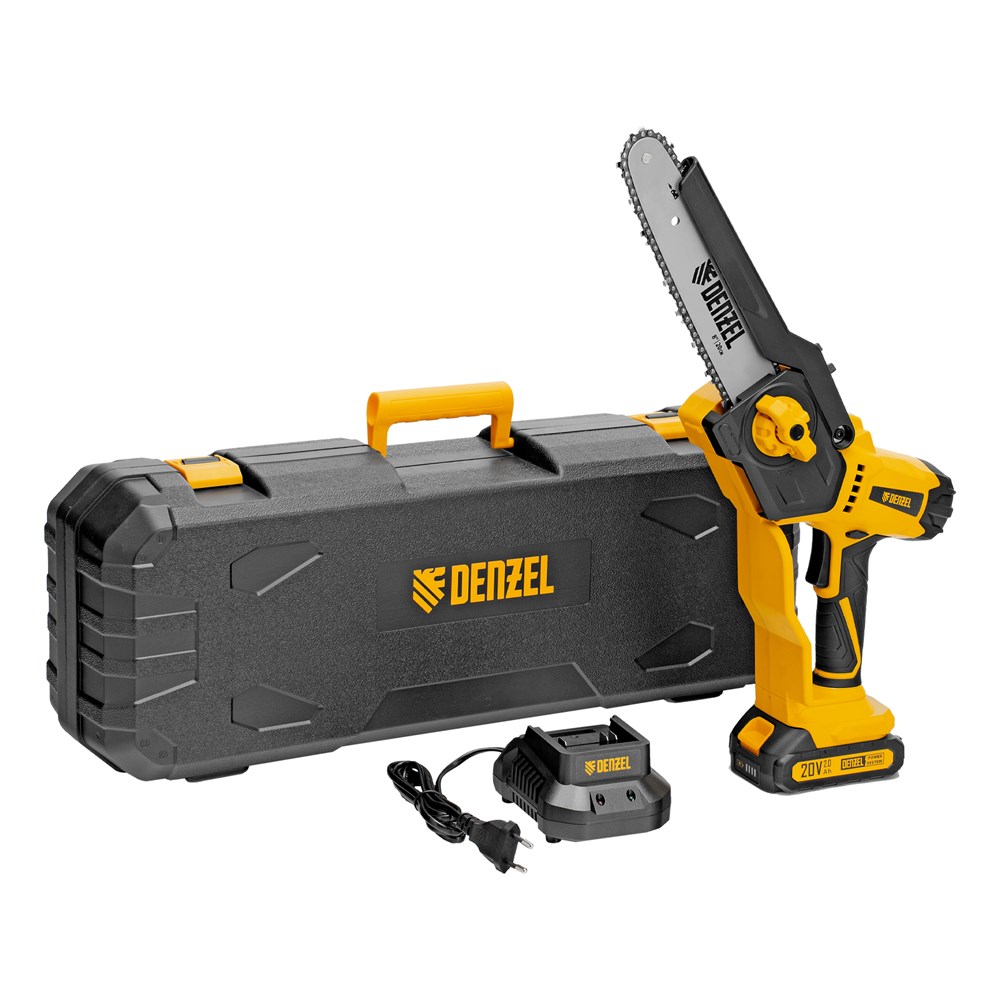 Аккумуляторная цепная мини-пила Denzel CCS-200BL 58653 с шиной длиной 200 мм работает от аккумулятора Li-Ion 20 В. Используется для спиливания сучков и веток. Бесщеточный двигатель обеспечивает длительную эффективную работу и не требует сложного обслуживания. Аккумулятор Li-Ion без эффекта памяти допускает подзарядку без риска потери емкости. Инструмент рекомендован для решения бытовых задач в саду и на дачном участке.