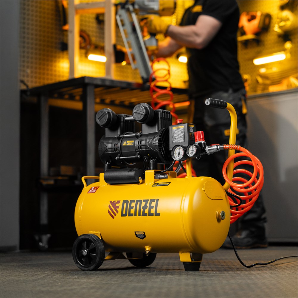 Компрессор безмасл. малошумный DLP-950/24, 950Вт,24 л, 2850 об/мин, 170 л/мин Denzel