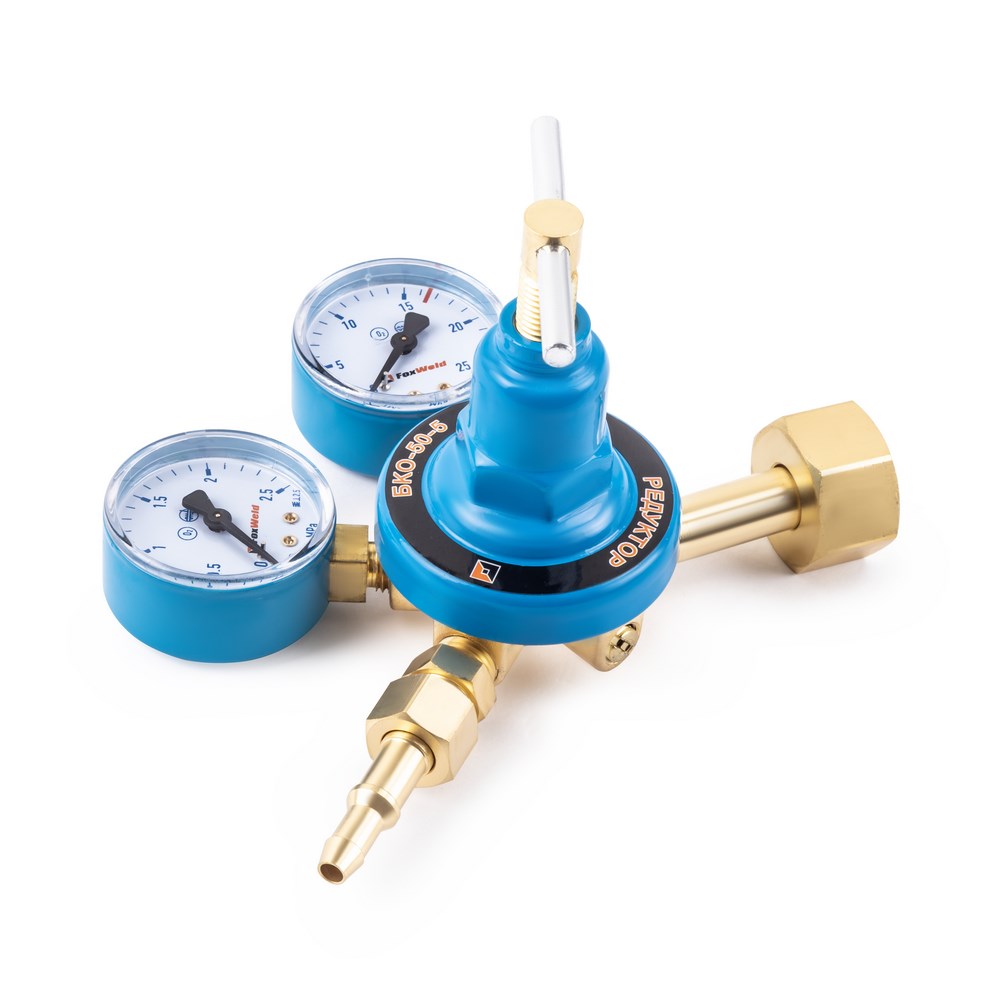 Кислородный редуктор БКО-50-5 предназначен для регулировки подачи кислорода на выходе из баллона, снижает и выравнивает давление газа до рабочего уровня, поддерживает его заданный расход при газопламенной обработке. Редуктор кислородный оснащен двумя манометрами: высокого давления на входе и низкого давления на выходе. Вентиль тонкой настройки позволяет плавно регулировать уровень подачи газа и удобно сменить горелку без перенастройки рабочего давления. Кислородный редуктор используется при резке и пайке металлов, сварочных работах и газовом напылении.