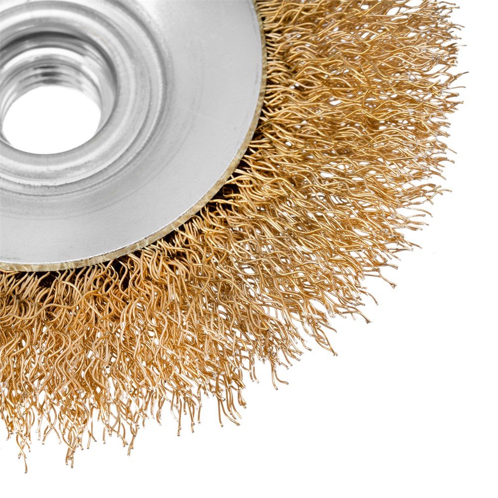 Щетка для УШМ, 100 мм, М14, "тарелка", латунированная витая проволока Matrix