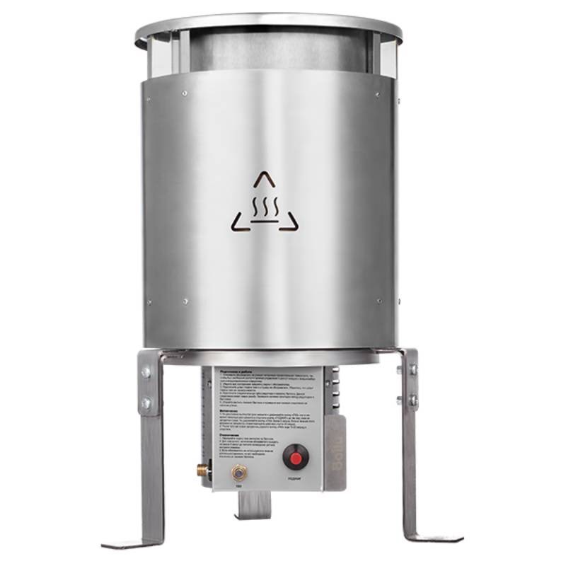 Прибор изготавливается из нержавеющей стали и работает на пропан, пропан-бутан, или бутановом газе. Обогреватель оснащается удобным пьезорозжигом.