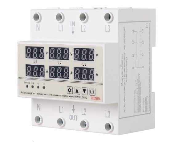 Блок защиты по напряжению "Ресанта" АЗМ-63/3АРД регулируемый (с дисплеем) Ресанта