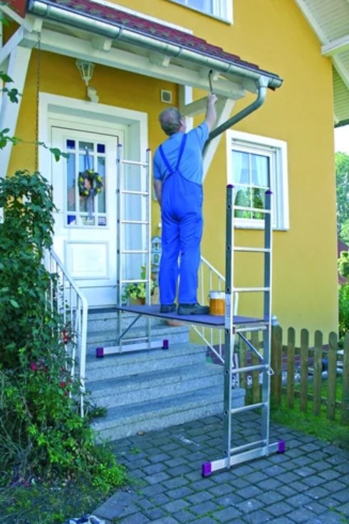 Малые лестничные подмости Krause Corda 2х7 080103 - надежная и устойчивая конструкция, применяемая при ремонтно-монтажных и хозяйственных работах, а также для работы на склонах и ступеньках. Рабочая платформа крепится на перекладины боковин, при этом высота рабочей зоны регулируется от перекладины к перекладине. Отдельно боковины могут быть соединены в стремянку или использоваться как приставные лестницы. Долговечность конструкции обеспечено высококачественным алюминиевым материалом, из которого изготовлены подмости. Может также использоваться на ступенях. Помост (147 х 50 см) защищен от влаги и скольжения.