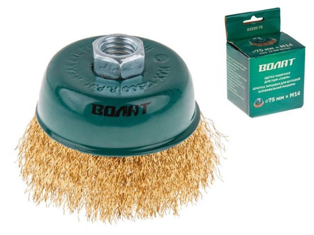 Щетка д/шлиф.маш."чашка" гофр. 100мм ВОЛАТ (для УШМ шлифмашины болгарки М14 торцевая крацовка)