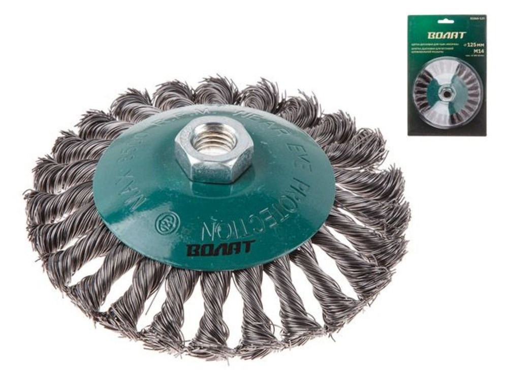 Щетка дисковая косич.125мм/M14 ВОЛАТ (для УШМ шлифмашины болгарки М14 тарелка торцевая крацовка)