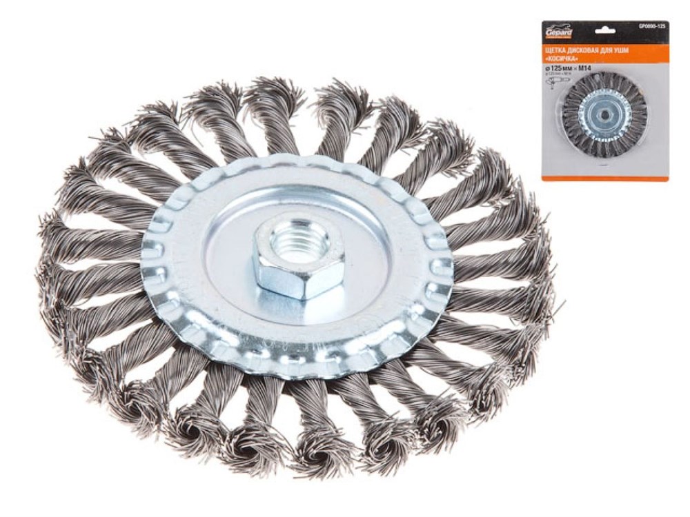 Щетка дисковая косич.125мм/M14 GEPARD (GP0890-125) (плоская, для УШМ, в блистере)