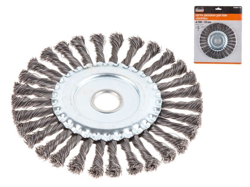Щетка дисковая косич.180ммх22мм GEPARD (GP0894-180) (плоская, для УШМ, в блистере)