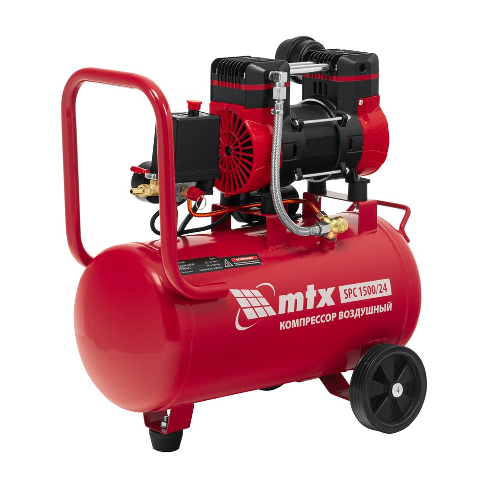 Компрессор безмасляный малошумный SPC 1500/24, 1500 Вт, ресивер 24 л, 260 л/мин// MTX