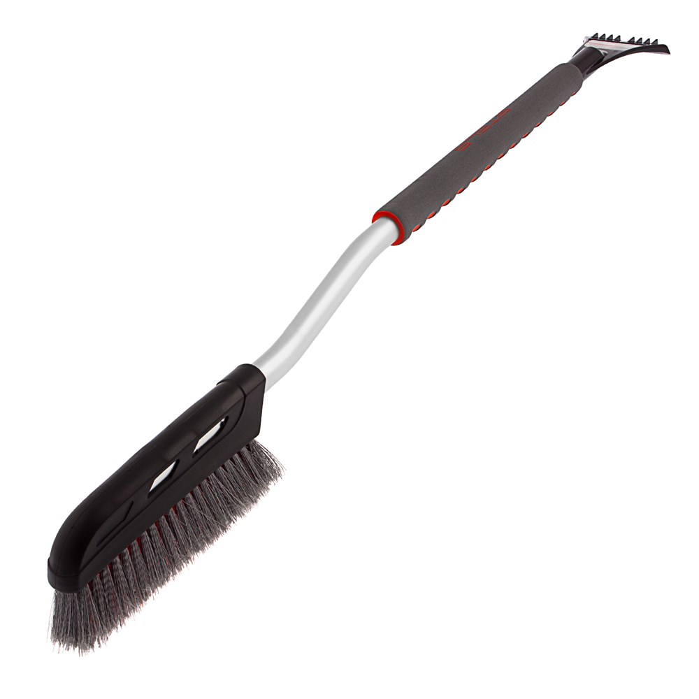 - Долговечность — щетка-сметка со скребком изготовлена из морозоустойчивого пластика. Высокая эффективность — щетина с распушенными кончиками не царапает лакокрасочное покрытие, скребок шириной 10,5 см быстро очищает стекла. Эргономичность — изогнутая рукоятка облегчает очистку труднодоступных мест, благодаря мягкой накладке щетку комфортно держать без перчаток.
