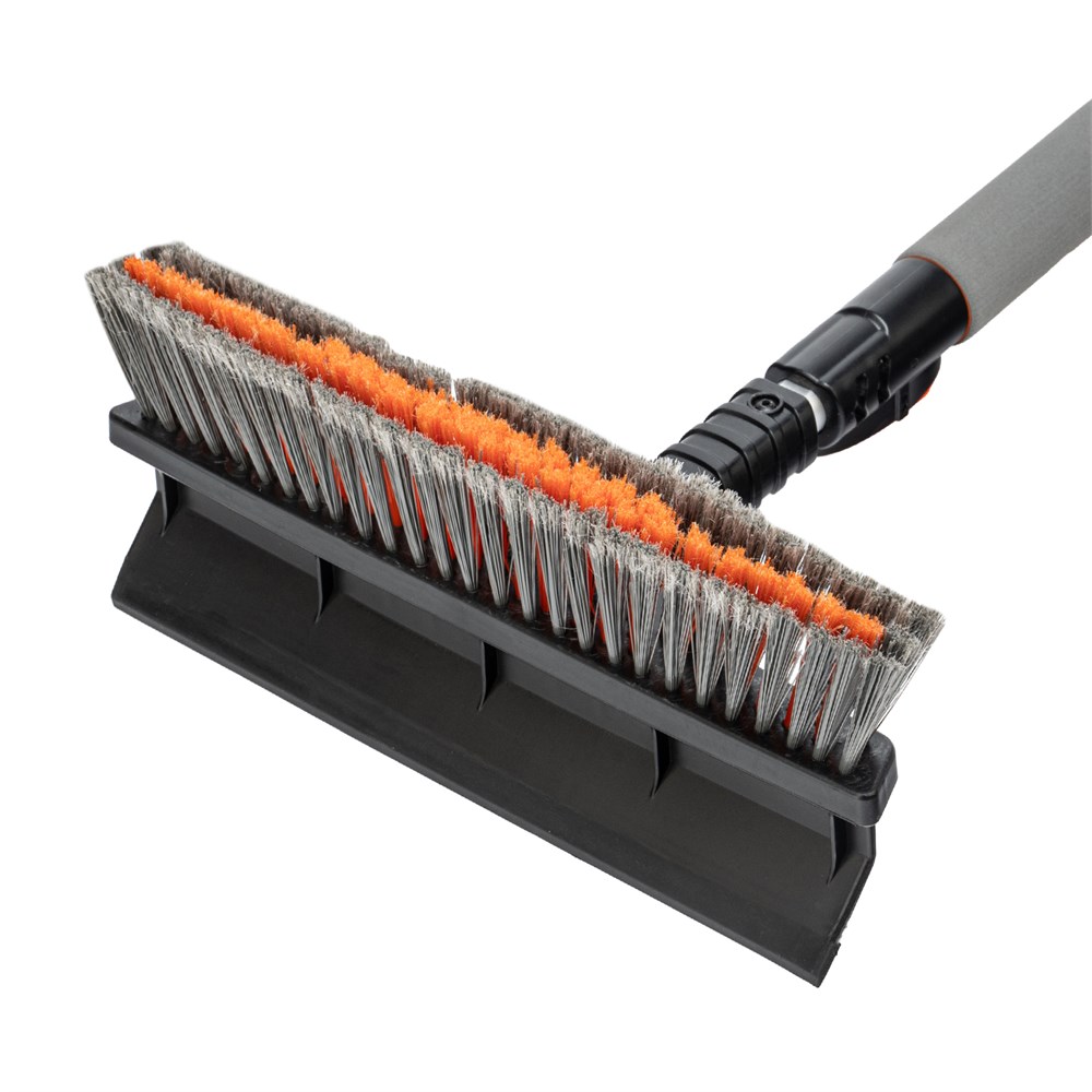 - Долговечность — щетка изготовлена из морозостойкого пластика. Высокая эффективность — скребок с зубьями для дробления льда успешно справляется даже с толстым слоем наледи, водосгон удаляет влагу со стекол и зеркал. Аккуратное очищение — плотная щетина, распушенная на концах, эффективно убирает слой снега, не царапая поверхность кузова. Комфортное использование — мягкая накладка на рукоятке позволяет держать щетку без перчаток.